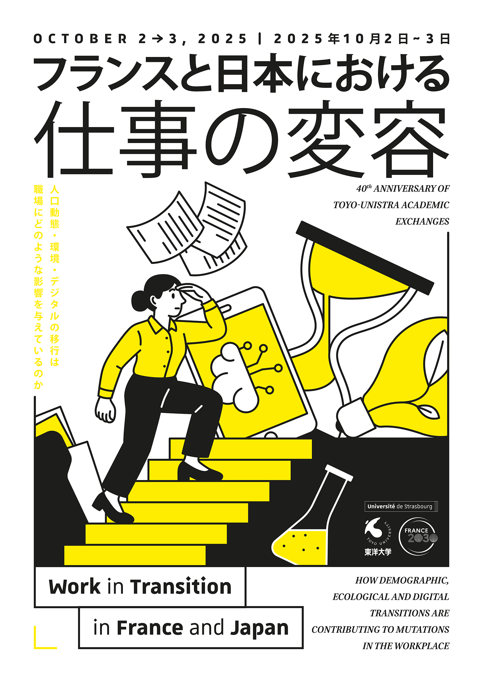 Ce colloque est organisé pour célébrer le 40ème anniversaire des échanges académiques entre l’Université Toyo (Japon) et l’Université de Strasbourg (Unistra). Il se tiendra à Strasbourg les 2 et 3 octobre 2025 à l’Amphi Beretz. Un second événement sera organisé par l’Université de Toyo en novembre 2025, avec la présence et les contributions des chercheurs et enseignants de l’Unistra.